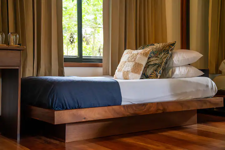 Experience tranquility and elegance in our Bungalow Deluxe Queen, perfectly situated in the heart of the rainforest. This beautifully designed space features a comfortable queen-size bed, ensuring a restful night’s sleep and a cozy retreat for couples or solo travelers.
