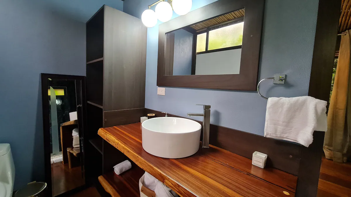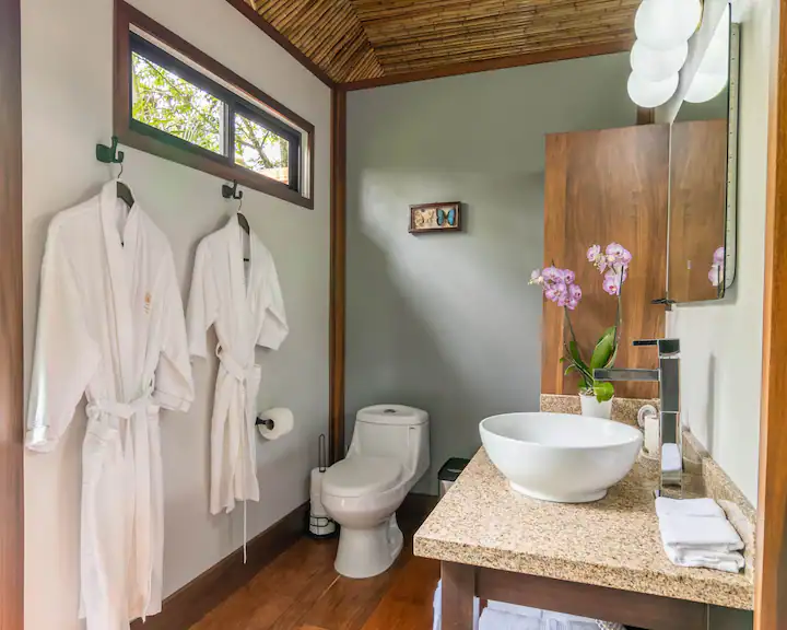 The fully equipped kitchen allows you to prepare your favorite meals and enjoy them on the private terrace overlooking the forest. Stay connected with complimentary Wi-Fi throughout the bungalow—ideal for keeping in touch with loved ones or planning your next Costa Rican adventures.