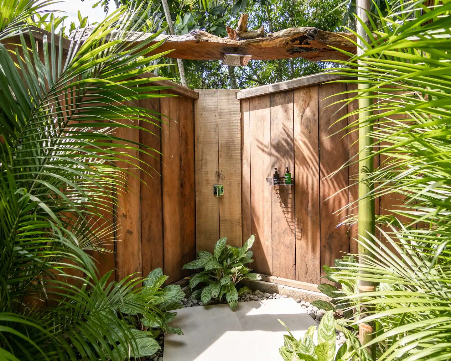 The highlight of the bungalow is, without a doubt, the private hot tub with hot water and the outdoor shower, offering the perfect setting to relax and unwind in complete privacy, surrounded by the stunning beauty of the rainforest.